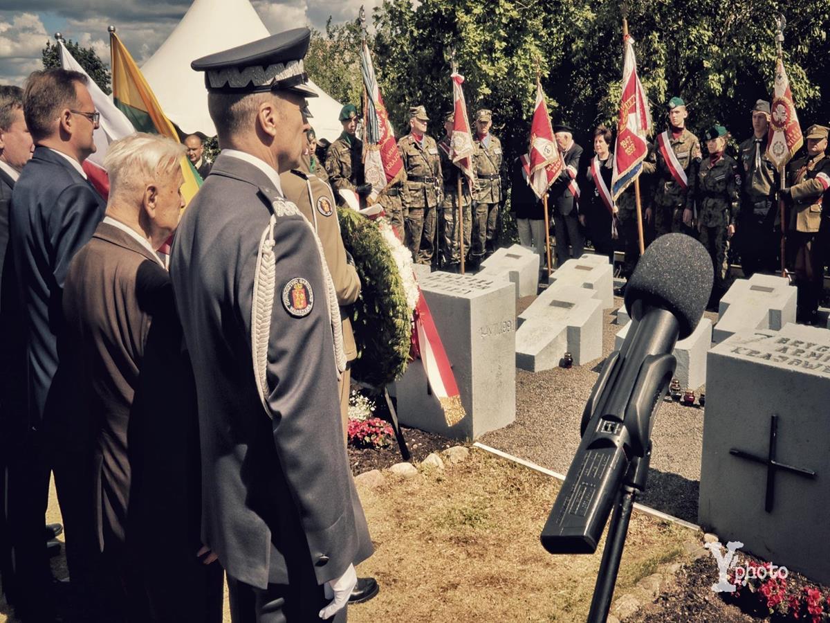 Główne uroczystości rocznicowe odbyły się w niedzielę 7 lipca na cmentarzu na Rossie w Wilnie, wcześniej jednak delegacja naszej Fundacji wraz z delegacją Stowarzyszenia Łagierników Żołnierzy Armii Krajowej, Fundacji Pamięci Historii i Kultury Polskiej na Białorusi, Stowarzyszenia „Brygada Inki” oraz z udziałem pocztów sztandarowych wystawionych m.in. przez Strzelców Rzeczypospolitej oraz I Liceum Ogólnokształcące PUL im. 111 Eskadry Myśliwskiej w Wołominie złożyła kwiaty i zapaliła znicze pamięci w kwaterze Armii Krajowej na Cmentarzu w Kolonii Wileńskiej gdzie spoczywa co najmniej 58 żołnierzy AK z okręgów wileńskiego i nowogródzkiego, poległych w walce o stolicę Wileńszczyzny, a także zmarłych w pobliskim szpitalu polowym. Kolonia Wileńska to także miejsce urodzenia i młodości jednej z uczestniczek naszej delegacji – pani ppłk Stanisławy Kociełowicz, sanitariuszki i łagierniczki, którą otaczamy opieką i wsparciem. Wysłuchaliśmy w tym miejscu wzruszających wspomnień i historii pani Stanisławy.