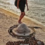 Kolejne godziny spędziliśmy pracowicie machając rękami i napinając mięśnie. Czekała na nas wyprawa kajakami w górę rzeki Piaśnicy. Meandrującą nieprawdopodobnie rzeką dotarliśmy po ponad pięciokilometrowym spływie do Morza Bałtyckiego gdzie spędziliśmy resztę popołudnia. Wieczorem w ośrodku czekało na nas ognisko z kiełbaskami i kresowe warsztaty w plenerze. Nie zabrakło opowieści o dawnych Kresach, historii rodzinnych i oczywiście wspólnego śpiewu. Uczestnicy – ale też i kadra obozu – zdzierali gardła do późnej nocy. Zapachniało dymem i dawnymi Kresami …