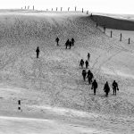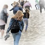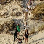 Z Gdańska ruszyliśmy do Słowińskiego Parku Narodowego, utworzonego dla zachowania w niezmienionym pięknie systemu jezior przymorskich, bagien, torfowisk, łąk, nadmorskich borów, i lasów, a przede wszystkim wydmowego pasa mierzei z unikatowymi w Europie wydmami ruchomymi. O randze i wartości przyrodniczej Parku świadczy fakt umieszczenia go w międzynarodowej sieci obszarów chronionych takich jak: HELCOMBSPA, Światowy Rezerwat Biosfery UNESCO czy obszar wodno-błotny Ramsar. Pod wpływem wiatru przemieszczający się piasek powoduje, że wydmy „wędrują” na wschód z prędkością kilku metrów rocznie, zasypując napotkane lasy. Największy obszar wydmowy w okolicach Łeby ma obszar ok. 500 hektarów i stale się powiększa zasypując jezioro Łebsko. Na szlaku turystycznym została udostępniona Wydma Łącka, której wysokość obecnie ocenia się na ok 30 metrów i to właśnie ona była celem naszej wędrówki. Tutaj czekała nas kolejna wspinaczka i wędrówka po trudnym terenie jednak widoki, które mogliśmy podziwiać wynagrodziły wszelkie niewygody. Po wdrapaniu się na szczyt wydmy (niektórzy na czworakach) podziwialiśmy prawdziwie pustynny krajobraz, ale także widać ogrom jeziora Łebsko jak i błękit Morza Bałtyckiego. Mimo szalejącego wiatru dzień zakończyliśmy w trakcie „złotej godziny” na mieniącej się kolorami plaży.
