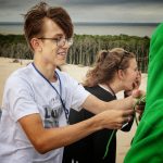 Dzieciaki z Lidy dotarły do Kopalina w najgorętszym dniu tegorocznego czerwca ze sporym opóźnieniem (procedury graniczne) jednak pomimo zmęczenia podróżą i doskwierającego upału (36 stopni w cieniu!), nikt nie chciał słyszeć o odpoczynku. Po krótkiej odprawie organizacyjnej ruszyliśmy nad morze. Bałtyk powitał nas ciepłą wodą i urywającym głowy wiatrem jednak nikt nie narzekał. Po przywitaniu z morzem ruszyliśmy na obchód okolicy – w trakcie dziesięciokilometrowego spaceru mieliśmy okazję zapoznać się z niełatwą historią polskiego Wybrzeża i losów Pomorzan. Spacer zakończyliśmy wspinaczką na wydmy w okolicach Lubiatowa i podziwianiem okolicznych krajobrazów. Nawet najmłodsi uczestnicy obozu, mimo zmęczenia, doskonale dali sobie radę w trudnym terenie 🙂